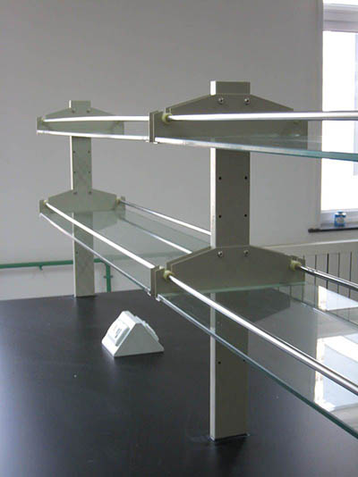 3、試劑架層板:層板采用1.0mm-1.2mm冷軋鋼板在數(shù)控加工中心、剪裁、定位打孔、折彎焊接后成型,需酸洗磷化處理后噴涂環(huán)氧樹脂粉末高溫烘烤固化。層高可以任意自由調節(jié)。